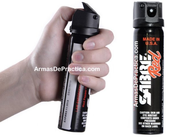 | Gas Pimienta Sabre Red, lata mediana tipo spray de 110 gr. para Defensa Personal, cuenta con seguro tipo Flip Top para prevenir descargas accidentales, mide 16 cm. de altura por 38 mm. de diametro, peso 147 gr., irrita ojos, nariz y garganta, lo mas notorio son los ojos, es muy molesto y resulta muy dificil tenerlos abiertos, ocaciona estornudos, tos, secresion de lagrimas, saliba y moco, es en extremo molesto y por lo tanto eficiente, en particular esta lata ya que el spray esparce muy bien el contenido y es suficiente para rociar muy bien al atacante, funciona muy bien en la mayoria de los animales, si el animal tiene ojos, nariz y garganta es muy probable que le afecte, lo mas comun son los ataques de perros pero es casi seguro que si lo ataca otro tipo de animal y le rocia Gas Pimienta, ese animal se asustaria y escaparia. |